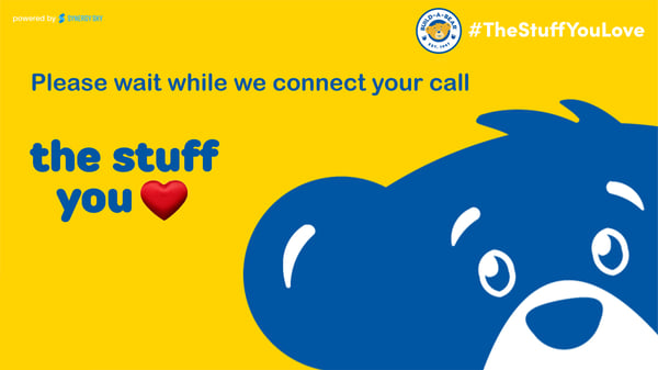 The waiting screen appears on the video system while waiting for others to connect. This is an example from our customer Build-A-Bear Workshop.